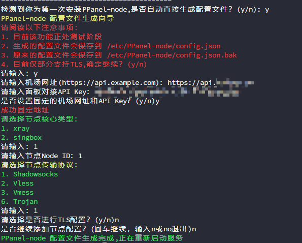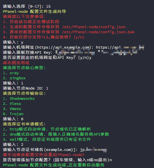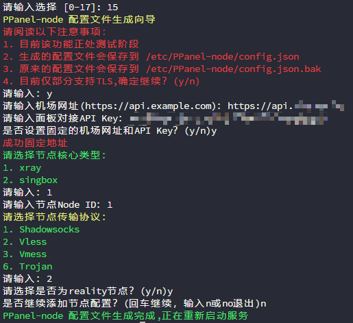 根据提示完成选择即可,ppnode修改自v2bx,可以参考v2bx配置文件设置即可
