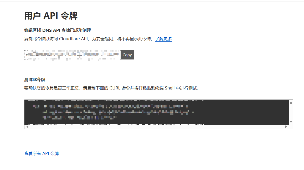复制下令牌(注意保存,仅可复制一次)