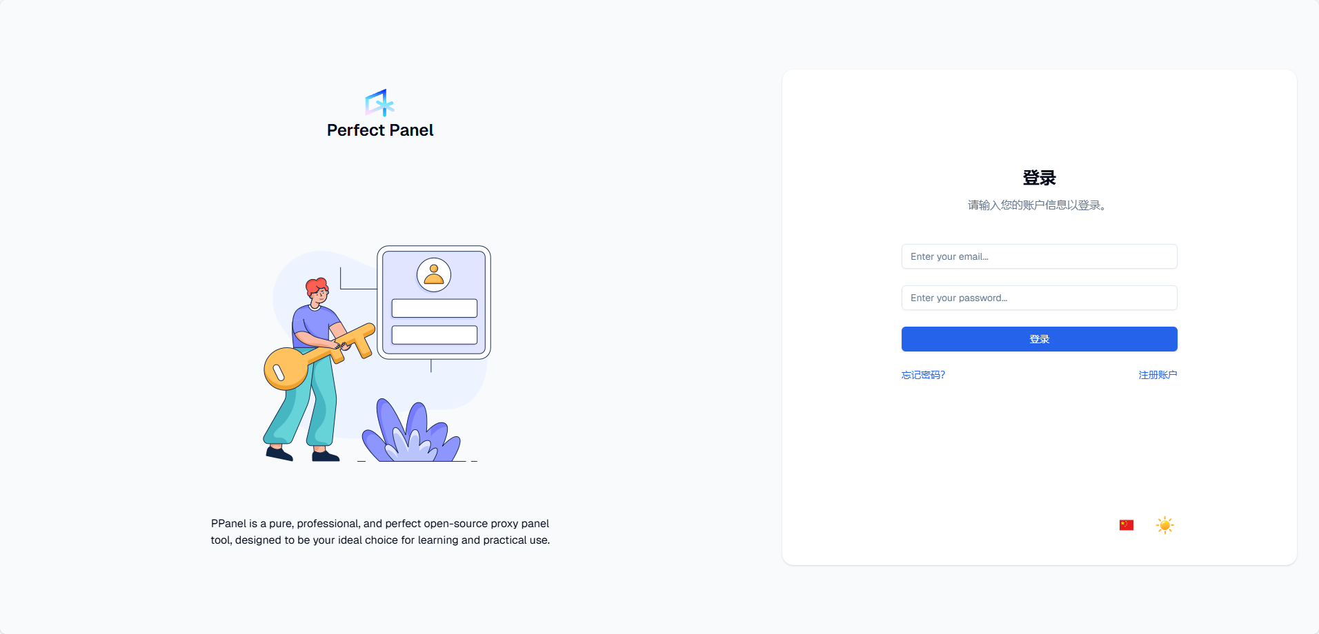 按照ppanel.yaml 中设置的管理账户和密码登录即可