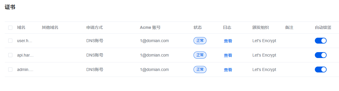 分别给三个域名申请证书