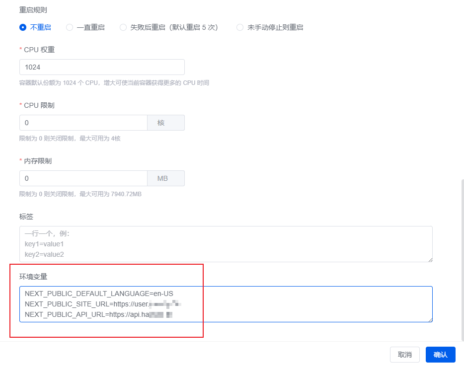 -e NEXT_PUBLIC_SITE_URL=https://user.example.com \