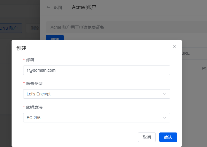 先分别创建Acme账户和DNS账户
