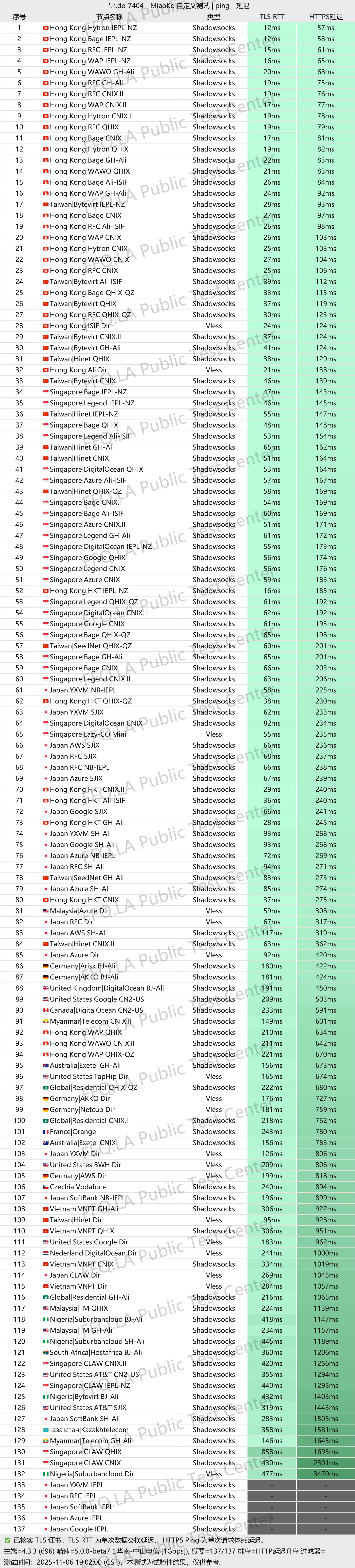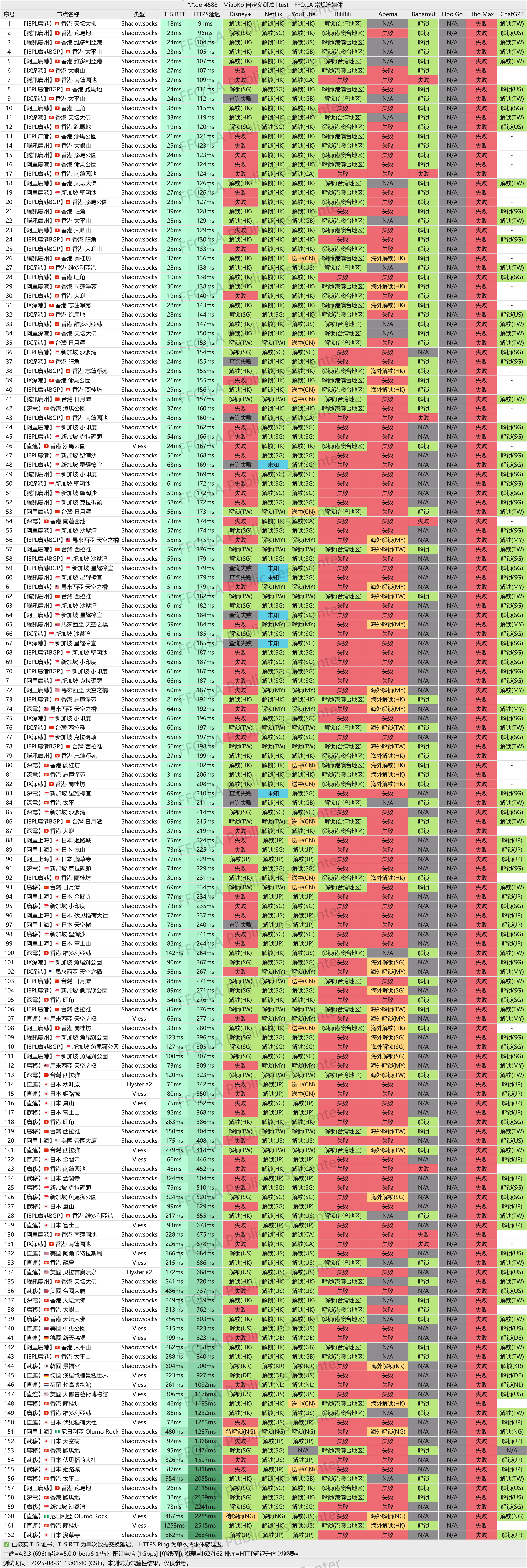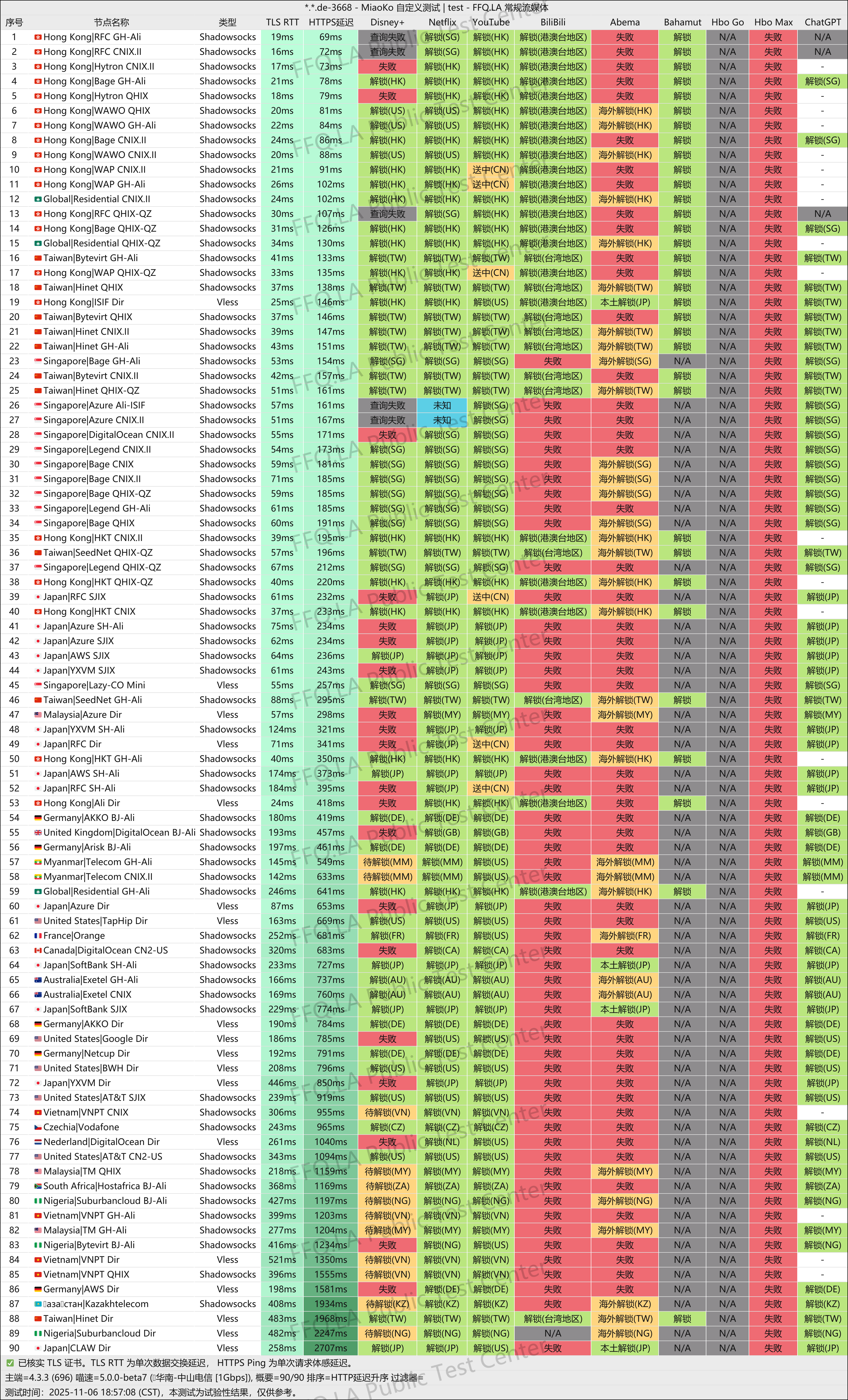 注:测试节点问题,实际使用全通,部分是IP限制,本文结果仅供参考,日常维护大部分通。部分v6入口(备用)